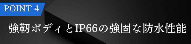 国際規格IP66をクリアした高い防塵防水性能を誇る。