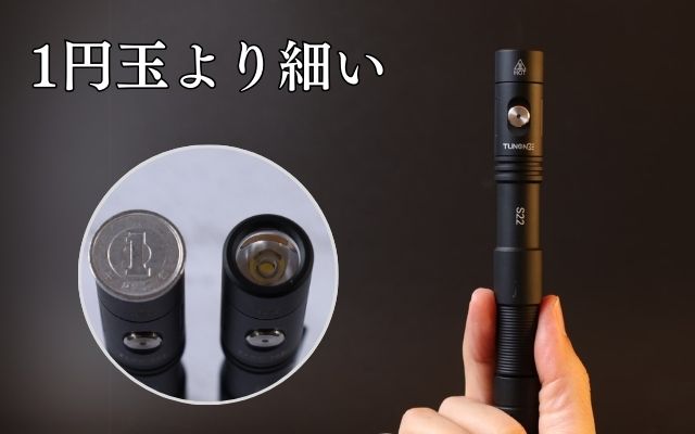 ボディの幅は1円玉より小さい。(※1円玉直径:2cm)