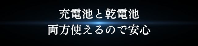 付属の充電池に加え、乾電池も使えるデュアルバッテリーモデル。